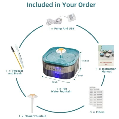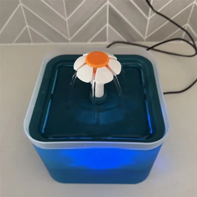 آبخوری اتوماتیک سگ و گربه دارای تصفیه آب طرح گل (دارای LED) ظرفیت 2/5 لیتر