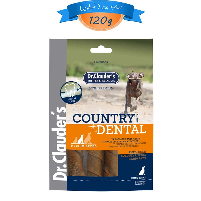 تشویقی دنتال سگ نژاد متوسط دکتر کلادرز طعم اردک با چرم گاو وزن 120گرم Dr.Clauder’s Country Dental Duck