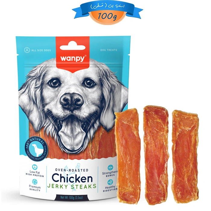 تشویقی سگ ونپی طعم مرغ مدل جرکی استیک وزن 100 گرم Wanpy Chicken Jerky Steaks