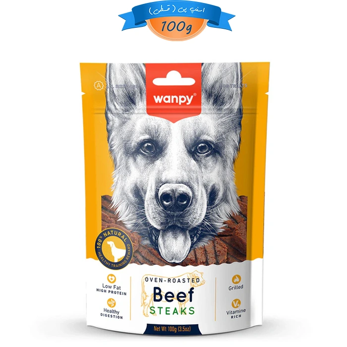 وقتی بوی استیک کبابی توی خونه پخش میشه حتی خودت هم نمیتونی مقاومت کنی، درسته؟ حالا تصور کن دلبند پشمالوت با اون دم تکونتکونیش یه تکه از همین خوشمزهی واقعی مخصوص خودش داشته باشه. تشویقی Wanpy Beef Steak همون هدیهی خوشطعم و خاصه که با گوشت واقعی گاو کبابیشده درست شده و یه میانوعدهی بینظیره برای سگهایی که عاشق طعم طبیعی و واقعی گوشت هستن.