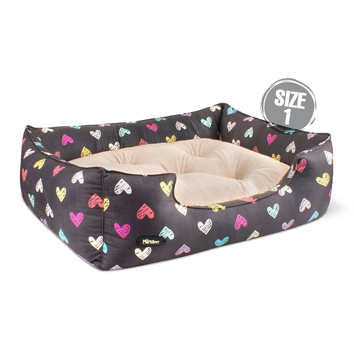جای خواب سگ و گربه جنس پارچه مبلی درجه یک تشک کرم مدل قلب
