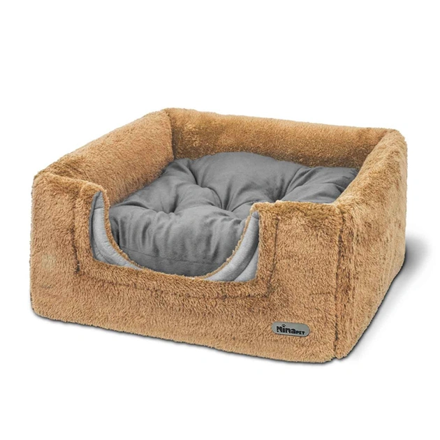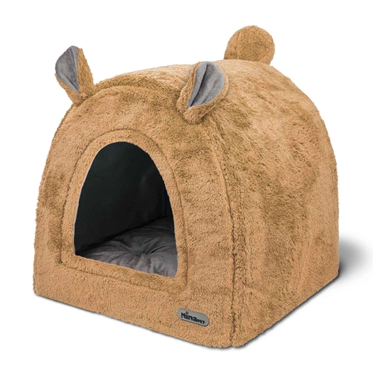 خانه چهار کاره سگ و گربه از جنس مخمل نرم و ضخیم رنگ نسکافه ای مدل خرسی نیناپت ابعاد 45x50x45 سانتی متر کد 1804