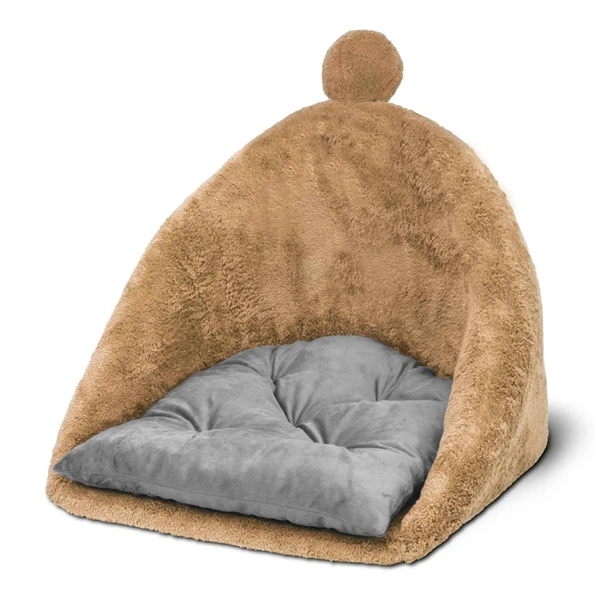 مزایای فوق‌العاده خانه چهار کاره سگ و گربه از جنس مخمل نرم و ضخیم رنگ نسکافه ای مدل خرسی