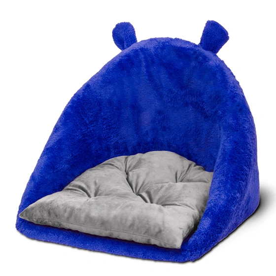 مزایای فوقالعاده خانه چهار کاره سگ و گربه از جنس مخمل نرم و ضخیم رنگ آبی کاربنی مدل خرسی