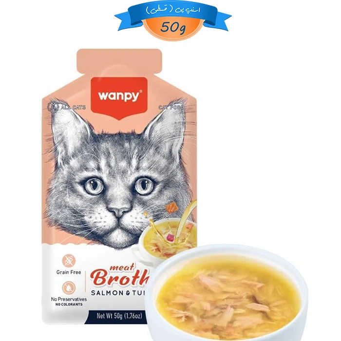 سوپ گربه ونپی طعم ماهی سالمون و تن وزن 50 گرم Wanpy Meat Broth Salmon & Tuna
