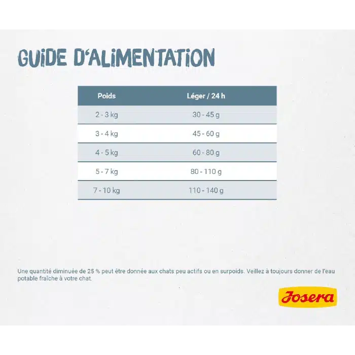 برای تنظیم میزان غذا، به وضعیت بدنی و فعالیت روزانه گربه خود توجه کنید و مقدار غذای خشک جوسرا لجر را متناسب با نیازهایش تغییر دهید.