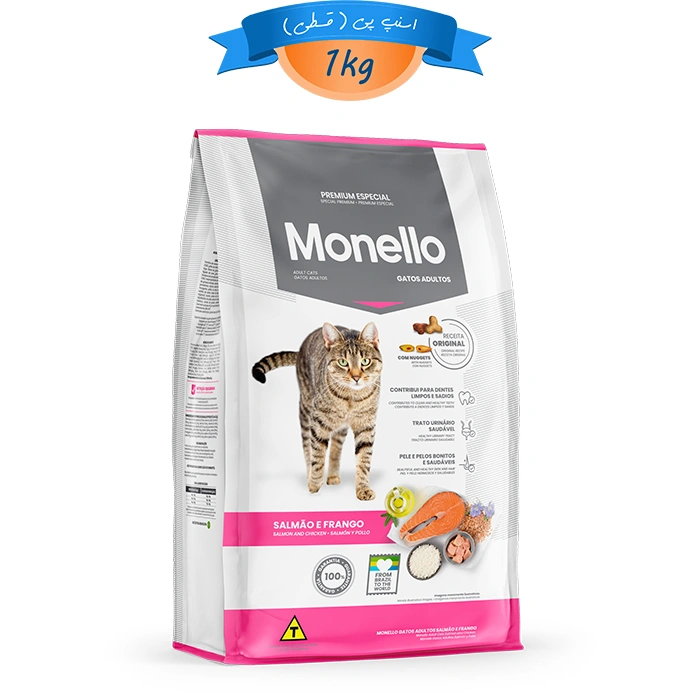 میخوای برای گربهت غذایی داشته باشی که هم دلش رو ببره، هم بدنش رو حسابی تقویت کنه؟ میکس مونلو همون رفیق خوشخوراک و سالمه ، ترکیبی از طعمهای وسوسهانگیز مرغ، تن و سالمون، با تعدادی از تشویقی های جذاب که داخل هر بسته وجود دارن . این غذا نه فقط خوشمزهست، بلکه با فرمولی دقیق ساخته شده تا به سلامت دندان، دستگاه ادراری و پوست و مو هم کمک کنه. خلاصه: خوشمزه، سالم و خیلی دوستداشتنی.