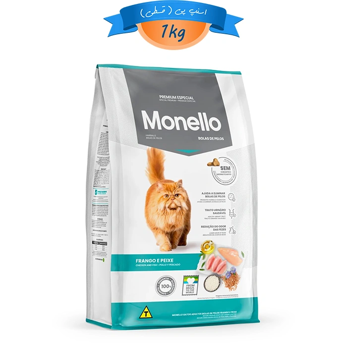 غذای خشک گربه بالغ مونلو طعم مرغ و ماهی مدل هیربال وزن 1 کیلوگرم (بسته بندی اصلی) hairball Monello