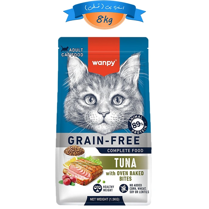 غذای خشک گربه بالغ ونپی طعم ماهی تن حاوی دانه تشویقی وزن 8 کیلوگرم Wanpy