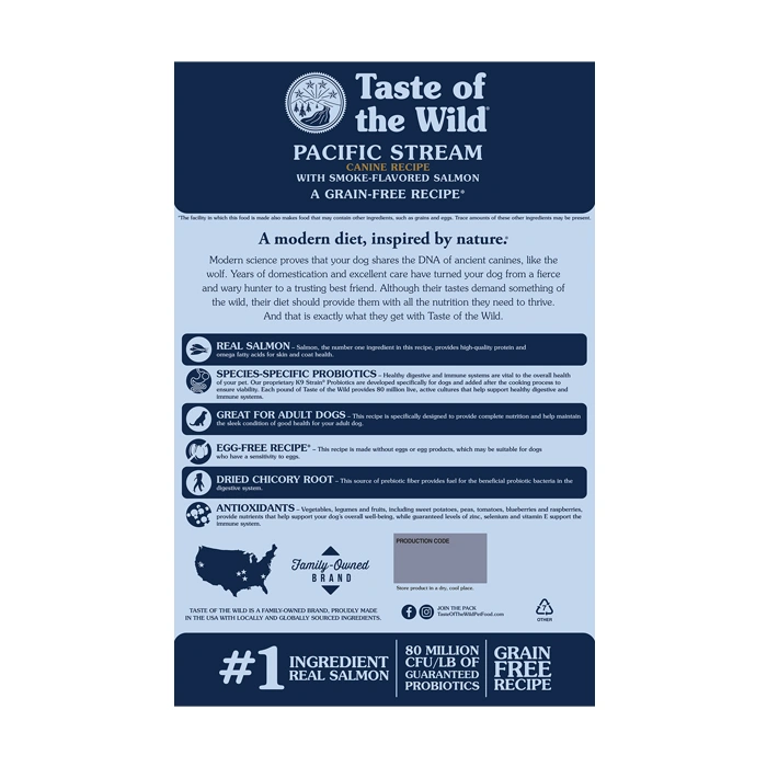 وقتی دلبندت دنبال یه تجربهی خاصه، چیزی فراتر از غذاهای تکراری مرغ و گوشت قرمز وقتشه با مدل Pacific Stream از برند خوشنام Taste of the Wild آشنا بشی یه وعدهی رویایی با طعم ماهی سالمون دودی و تازه که از اعماق دریا اومده تا دلبندت رو خوشحال کنه.