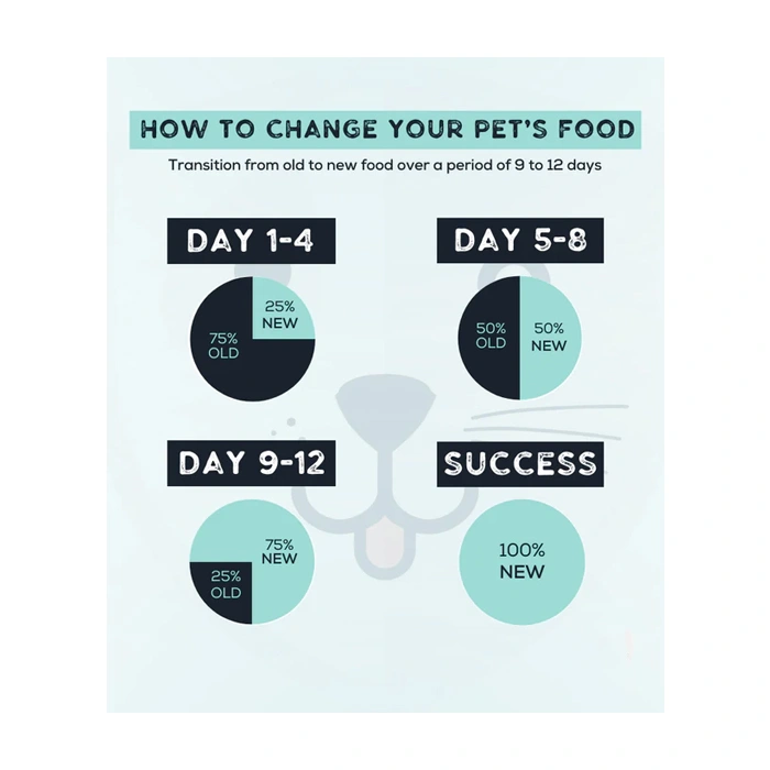 1. اگه می‌خوای از یه برند دیگه به Taste of the Wild تغییر بدی، طی ۵ تا ۷ روز این کارو انجام بده تا گربه‌ت راحت‌تر عادت کنه.