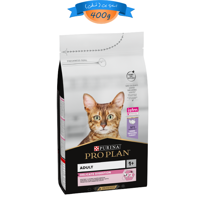 غذا خشک گربه بالغ پروپلن با معده حساس طعم بوقلمون مدل دلیکیت دایجسشن وزن 400 گرم ProPlan Delicate Digestion